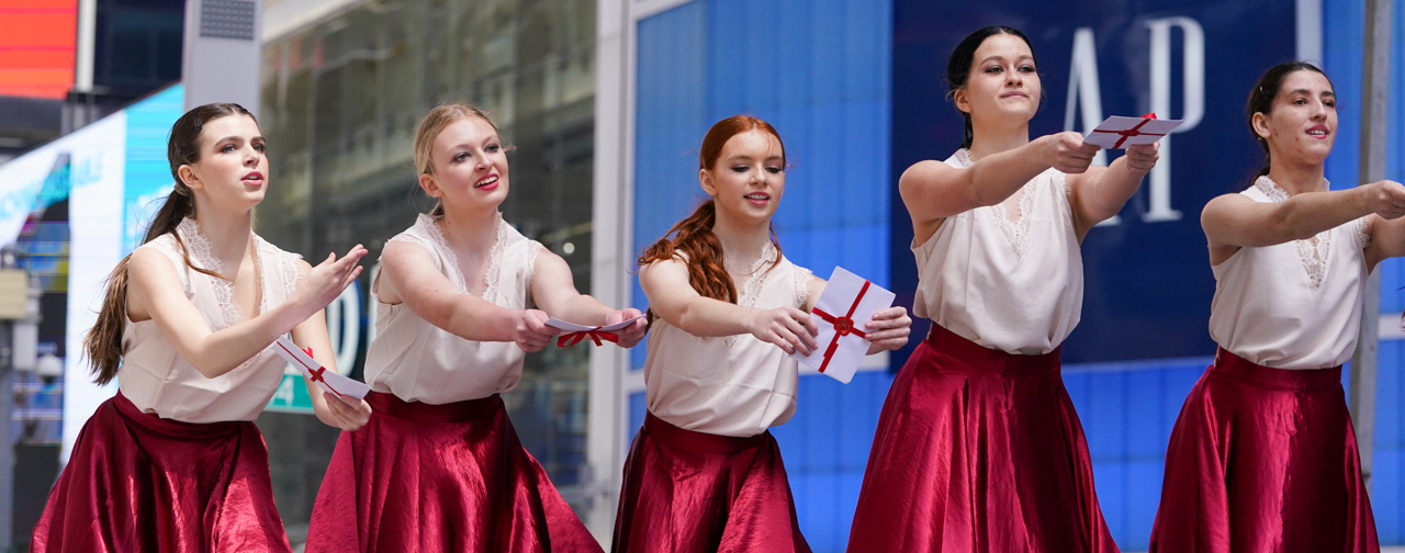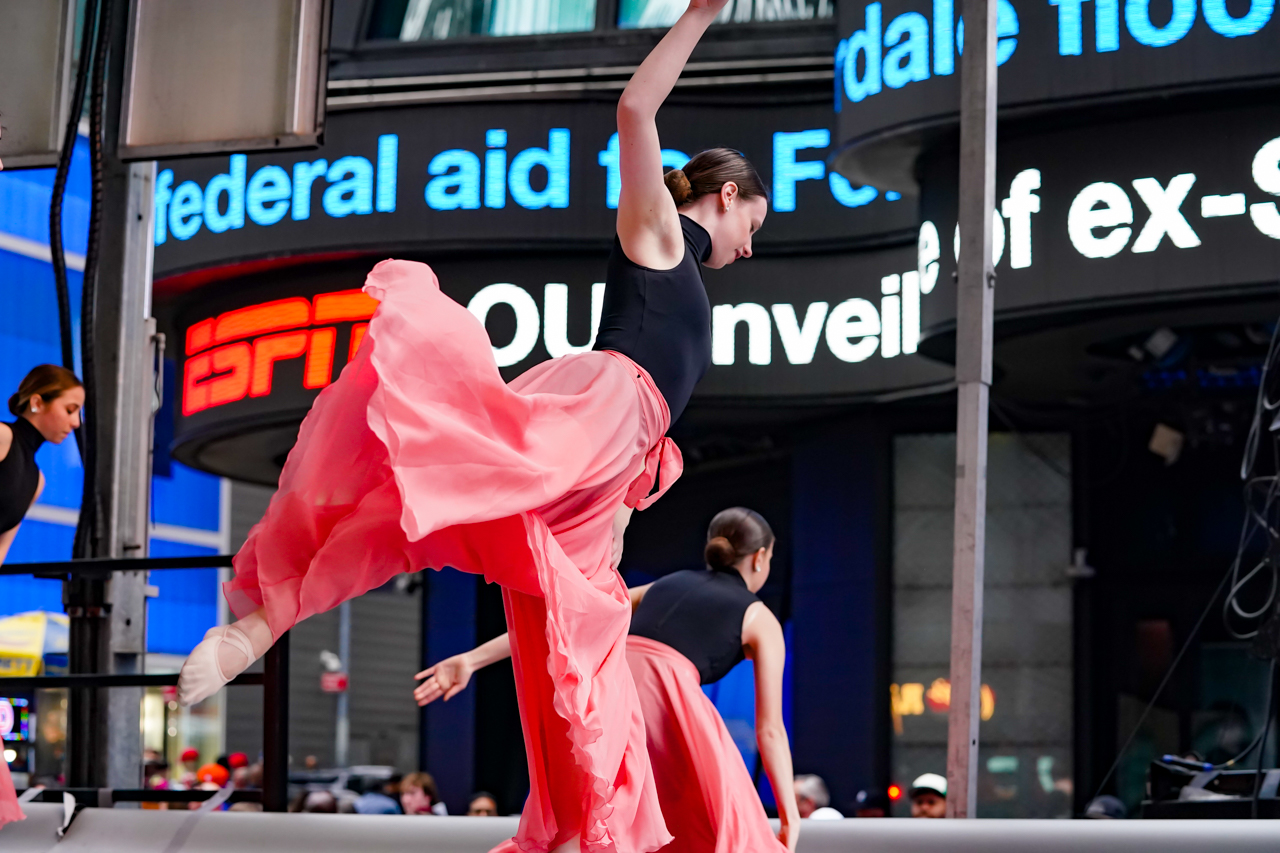 “These concerts bring hope and healing to humanity and offer a positive message to those who attend,” said Cutlip as she addressed the gathered throng at 44th and Broadway. “Dancers around the world gather to encourage and support one another through training, networking and performing. Our goal is to see every dancer nurtured to their fullest human potential, and by doing so, to realize a more positive and redemptive culture of dance and entertainment for the future generations.”