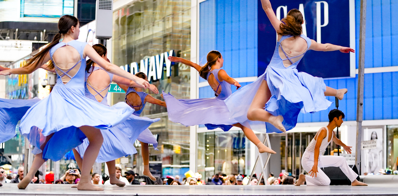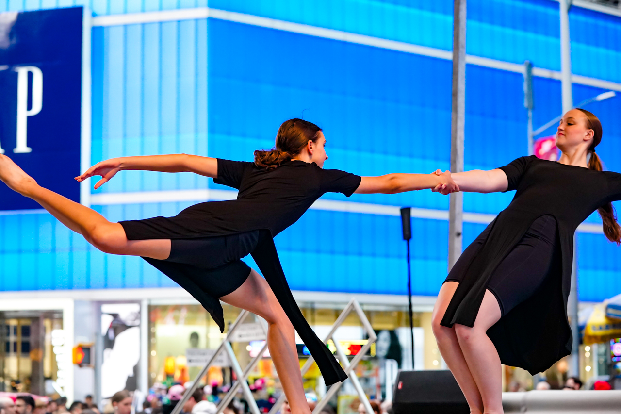 Project Dance, of course, now in its 23rd year and more than 100 dance events all over the world embossed on its resume, is more than any single dance studio or company. It is a collaborative effort that has evolved as a nationwide experience. The parent non-profit, Project Dance Foundation, has relationships with dance studios similar to Cutlip’s all over the country and several were on hand for the 2023 Project Dance event in Times Square. Among the states represented were North Carolina, New York, Hawaii, Florida, Texas, Connecticut, Minnesota, Pennsylvania and Tennessee, to name a few.