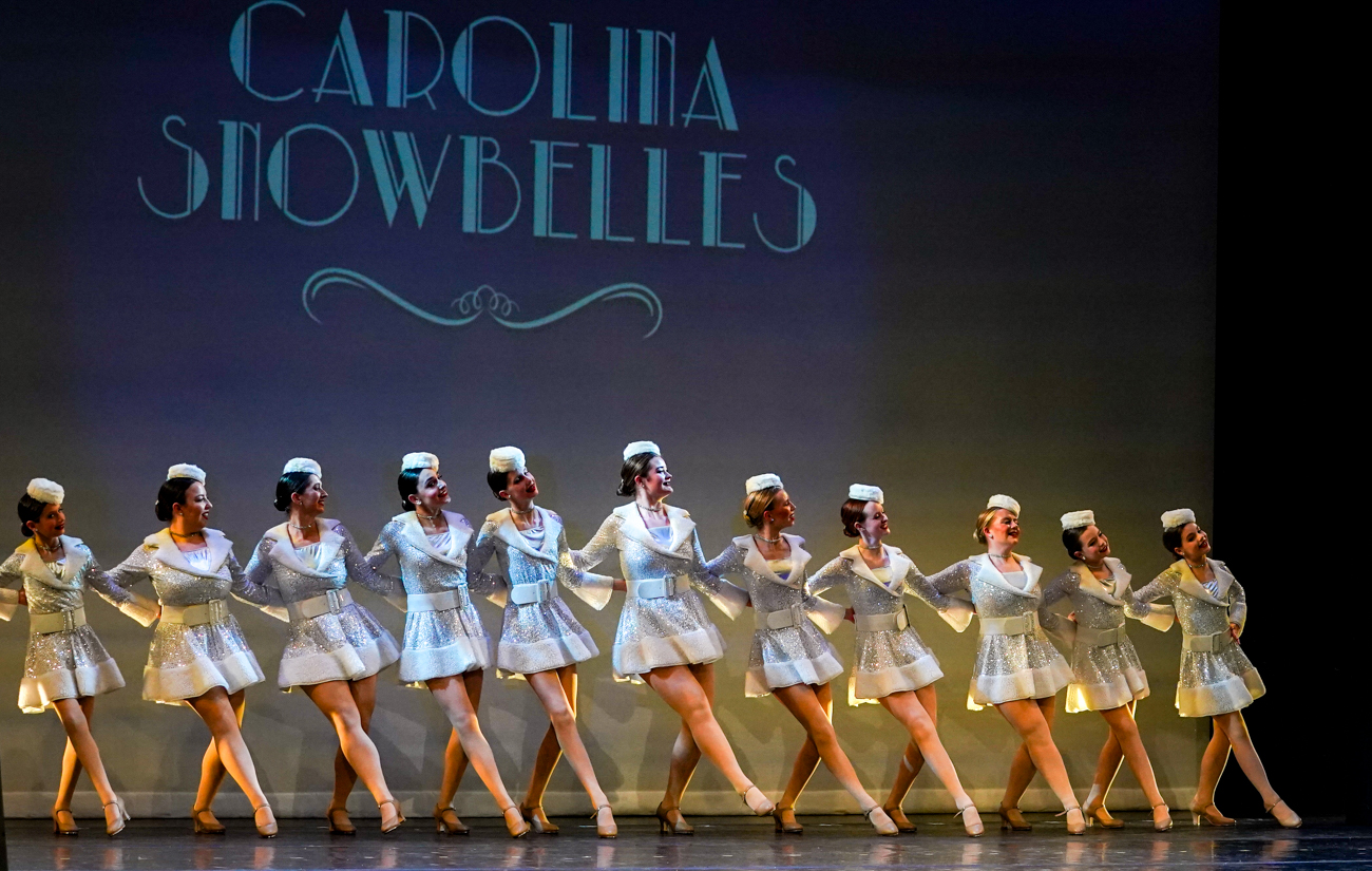 Members of The Carolina Snowbelles troupe include Claire Anderson, Genevieve Goff, Journey Lockhart, Skylar Moss, Luci Pedroni, Anasofia Salinas, Autumn Walker, Rachel Witmer, Brooke Church Handy, Mallory Habich, Ann Mellon, Cameron Parker, Emma Pinnix, Maggie Schlake, and Carly Watson.