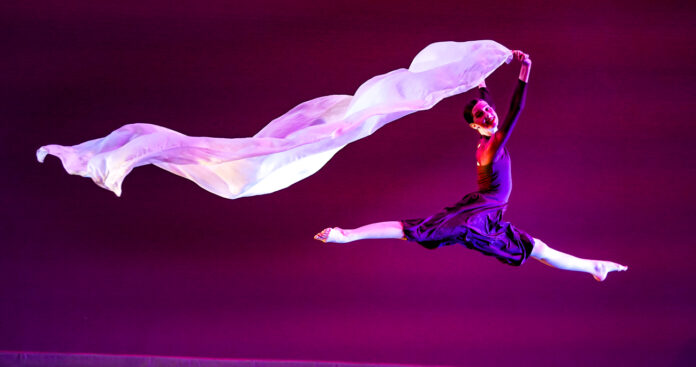 Festive white costumes with matching caps dip and swirl with the dance movements, including the Snowbelles’ Rockette-like, chorus line high kicks in unison that brought enthusiastic audience applause — and even a few raucous yelps.