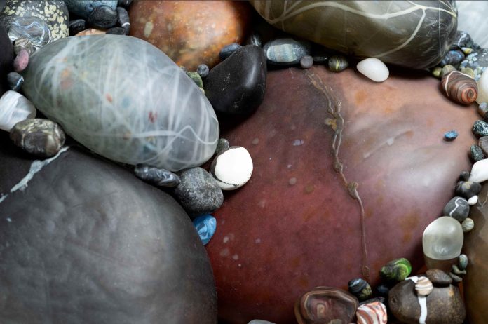 According to pre-exhibition literature, Vaughn’s “Considerations” invites visitors “… to step into a landscape of thousands of carefully crafted glass river rocks. Made using techniques like blowing, flame-working, casting, and laminating, these fragile stones are stacked and arranged to create an immersive installation that explores how we experience and remember the world around us. Each glass rock represents a moment in time — some tied to personal memories, others shaped from reclaimed glass, blending stories of loss and creation.”