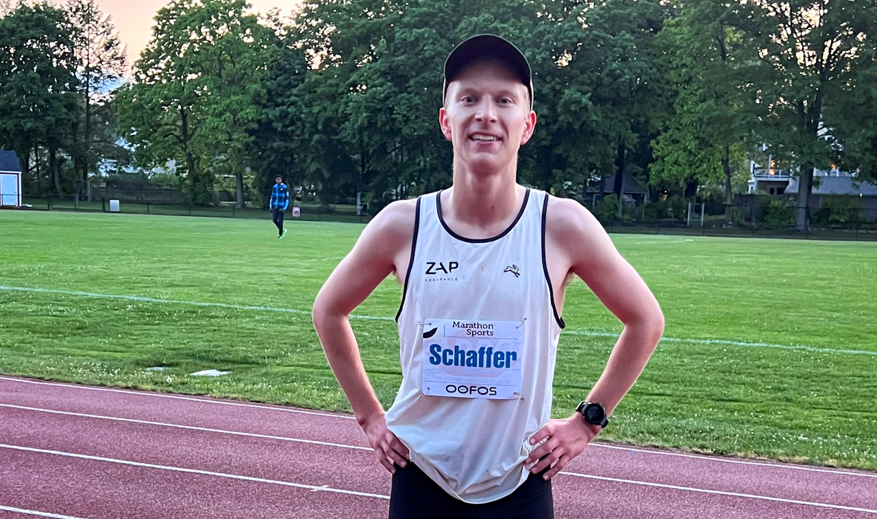 Schaffer started the race with a bit of jostling in getting across the starting line before settling into a position at the back of a tight pack that included all 12 runners. He stayed in that position for the better part of 1000 meters, then moved up to the No. 3 spot for the last couple laps. As they rounded the final turn, he shot to the outside and sprinted past the two runners then in front of him to get the “W.”