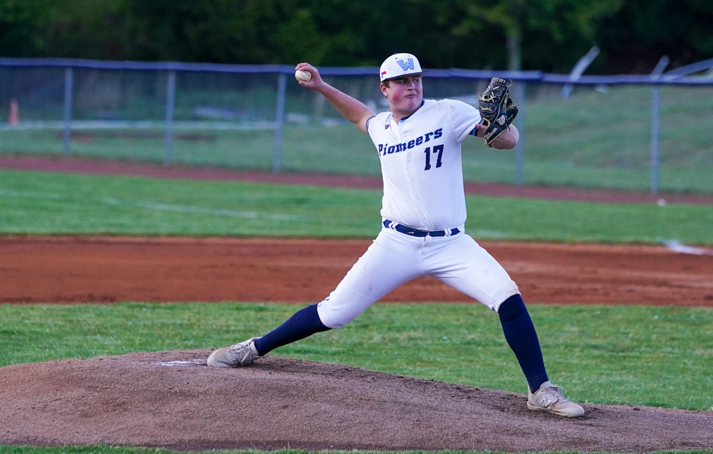 The Pioneers manufactured two runs in the bottom half of the 6th inning when Jameson Hodges led off with a line drive to the centerfield gap and sophomore shortstop Maddox Greene followed with a single to put runners at first and second (Hodges unable to advance on the play). Jacob Dilley loaded the bases with a shallow single to right that advanced the runners, then Tristan Salinas lifted a long fly ball to left, with Hodges tagging up and running home for the Pioneers’ first run on the sacrifice fly.