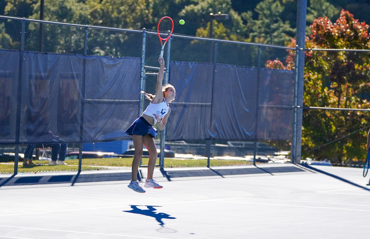 Pioneer sophomore Sienna Davidson, who stepped down to No. 2 singles for Senior Night from her usual No. 1 singles position, had less trouble from Ashe County freshman Addison Dollar, 6-0, 6-1.