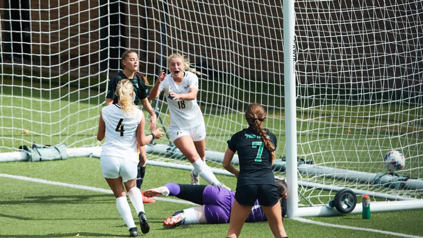 Then, following the ensuing kickoff, the Mountaineers won possession right back, and Katie Fuller played a ball to Shannon Studer along the far side of the field. Studer dribbled past her defender before firing a shot into the top-right corner from 30 yards out, to put the exclamation mark on the win.
