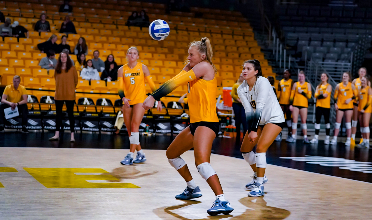 By David Rogers. BOONE, N.C. — Within the space of just six days, Appalachian State volleyball will play Louisiana three times, including early in next week’s Sun Belt Conference Championships on Thursday, Nov. 17, High Country Sports learned through back channels (the seedings will not be made official until Sunday, after the conclusion of conference play). By “spreading the love” on Nov. 11, the Mountaineers got the first tilt against the Ragin’ Cajuns out of the way with a sweep, 3-0, in front of almost 400 fans at the Holmes Convocation Center.
