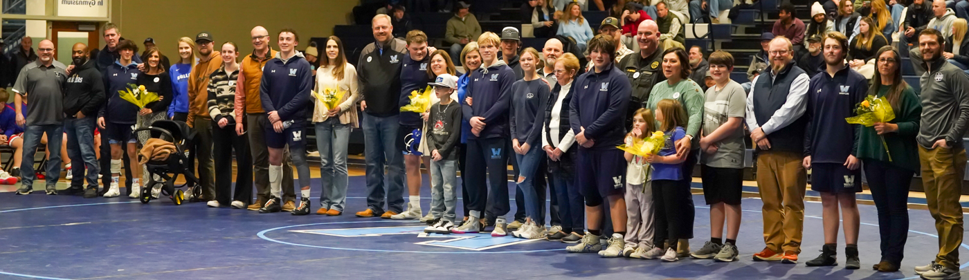 With only five conference dual meets in the 2023-24 season and the first two Watauga encounters at home, it may have seemed strange to celebrate the team’s six seniors with three Northwestern Conference dual meets still to be contested. But that is the luck of the draw, with all three of the remaining meets on the road: Ashe County (Jan. 9), South Caldwell (Jan. 12) and Alexander Central (Jan. 16). Next year, according to the Pioneers’ head coach Zach Strickland, Watauga will have three home conference meets and two on the road (assuming the conference composition remains the same).