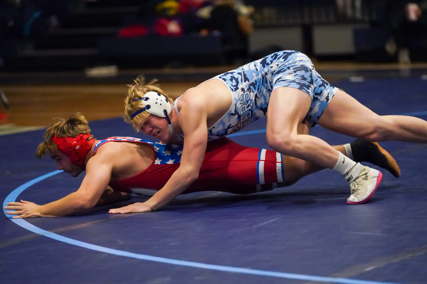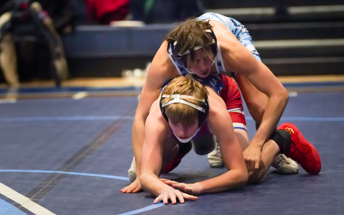 By now the team decision was well within hand for the Pioneers at 49-9, but senior Palmer Smith, a state qualifier as a junior in 2023, kept Watauga moving with a 13-3 major decision over Freedom’s Josh Glynn. When he was done with the 3-period victory, Watauga led, 53-9.