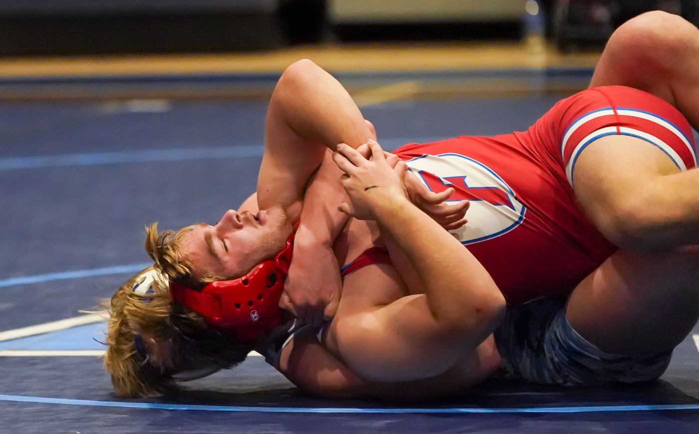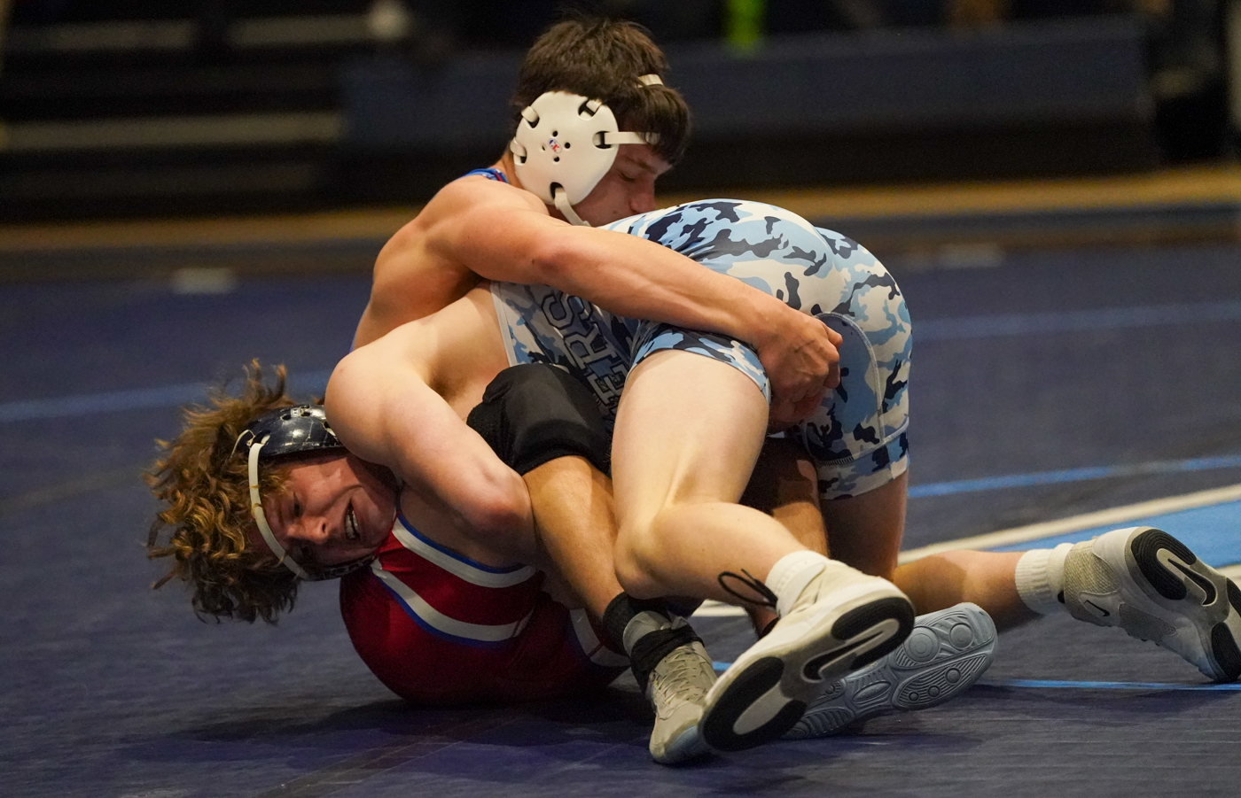At 126 lbs., Watauga’s Isaac Hensley was overmatched vs. Freedom’s Kaleb Pearson, the Pioneer junior losing to the Patriots’ sophomore, 12-5, in one of the few matches that went the full, three-period distance.
