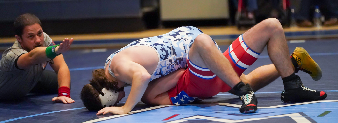 Pioneer junior Camden Brock continued the Watauga scoring streak with a 13-3 decision vs. Aiden Piscopo at 150 lbs. It didn’t take long for Watauga junior David Brooks to earn his team another first period pin, credited with the honors at 157 lbs. vs. Freedom’s Christian Truax.