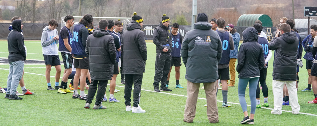 By David Rogers. BOONE, N.C. — With temperatures hovering in the high 30s, it was almost cold enough for the persistent rain to be called a “wintry mix.” The three dozen athletes aspiring to gain a roster spot in the 2023 edition of Appalachian FC weren’t concerned about the weather on Feb. 25.
