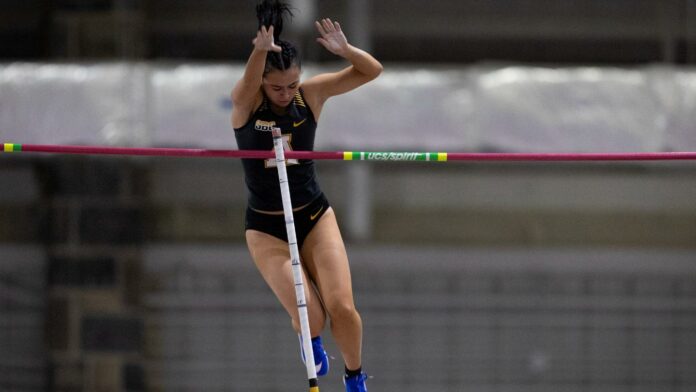 The Mountaineers went 1-2-3-4 in the women’s pole vault, led by sophomore Ava Studney, who matched the App State school record of 4.06m (13′ 3.75″). The record was set in 2004 by Suzanne Makinson. Graduate students Celia Agee and Noelle Meeker took second (3.60m (11′ 9.75″)) and third (3.45m (11′ 3.75″)). Sophomore Caroline Fowlkes placed fourth with a clearance of 3.30m (10′ 10″).