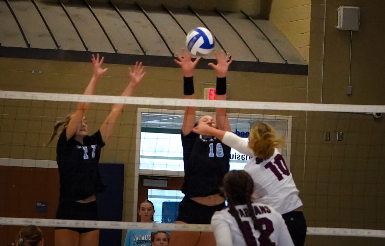 To be sure, their South Caldwell victims had their moments, keeping the ball in play for the occasional long rally following a desperately spectacular dig on ferocious kill shot by Watauga but, overall, they just didn’t have enough firepower to overcome the Pioneers. Led by outside hitters Emma Pastusic’ and Brooklyn Stanbery’s 15 and 13 kills, respectively, and set up for those shots by Lainey Gragg (15 assists) and Madi Combs (21 assists), Watauga overwhelmed the Spartans with sheer firepower.