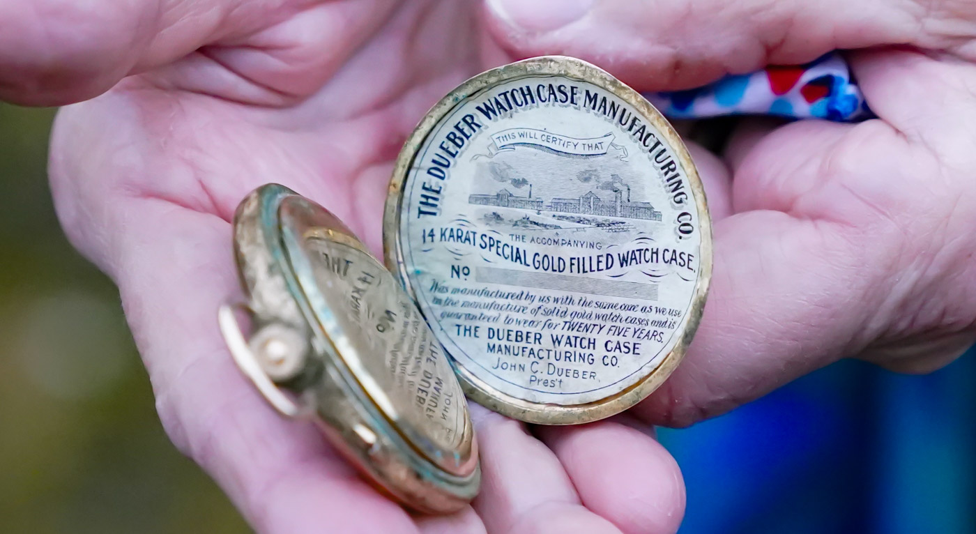 Brenner’s watch was identified as a “John Hancock” model, “Grade 3,” manufactured in Canton, Ohio, where the combined company had relocated in 1888. She also learned that the watch case is 14-carat, gold-filled, with 21 jewels among the watch movements.