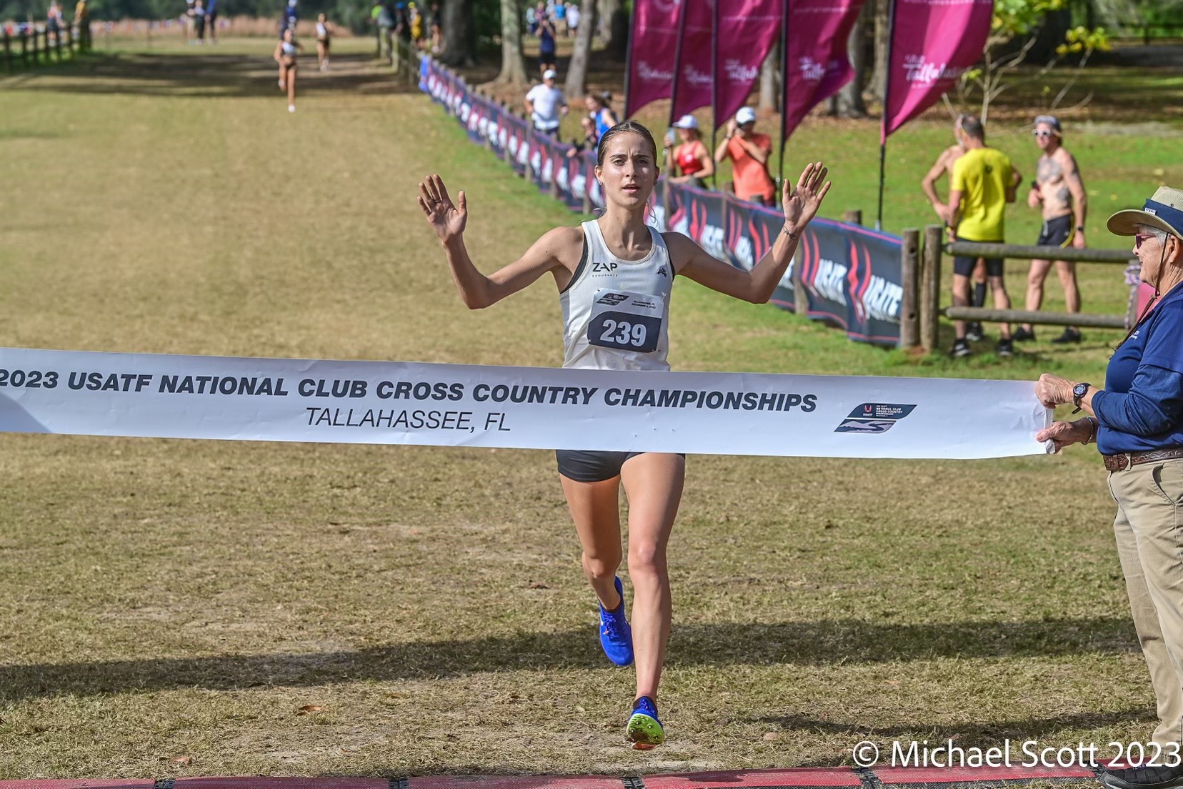 By David Rogers. TALLAHASSEE, Fla. — A stacked field of 131 elite athletes from across the nation, including full contingents from 20 top U.S. clubs and a smattering of top-level unattached harriers didn’t faze Amanda Vestri on Dec. 9. The former Syracuse University athlete now training with Blowing Rock-based ZAP Endurance claimed the championship title of the 2023 USATF National Club Cross Country Championships staged in Apalachee Regional Park.