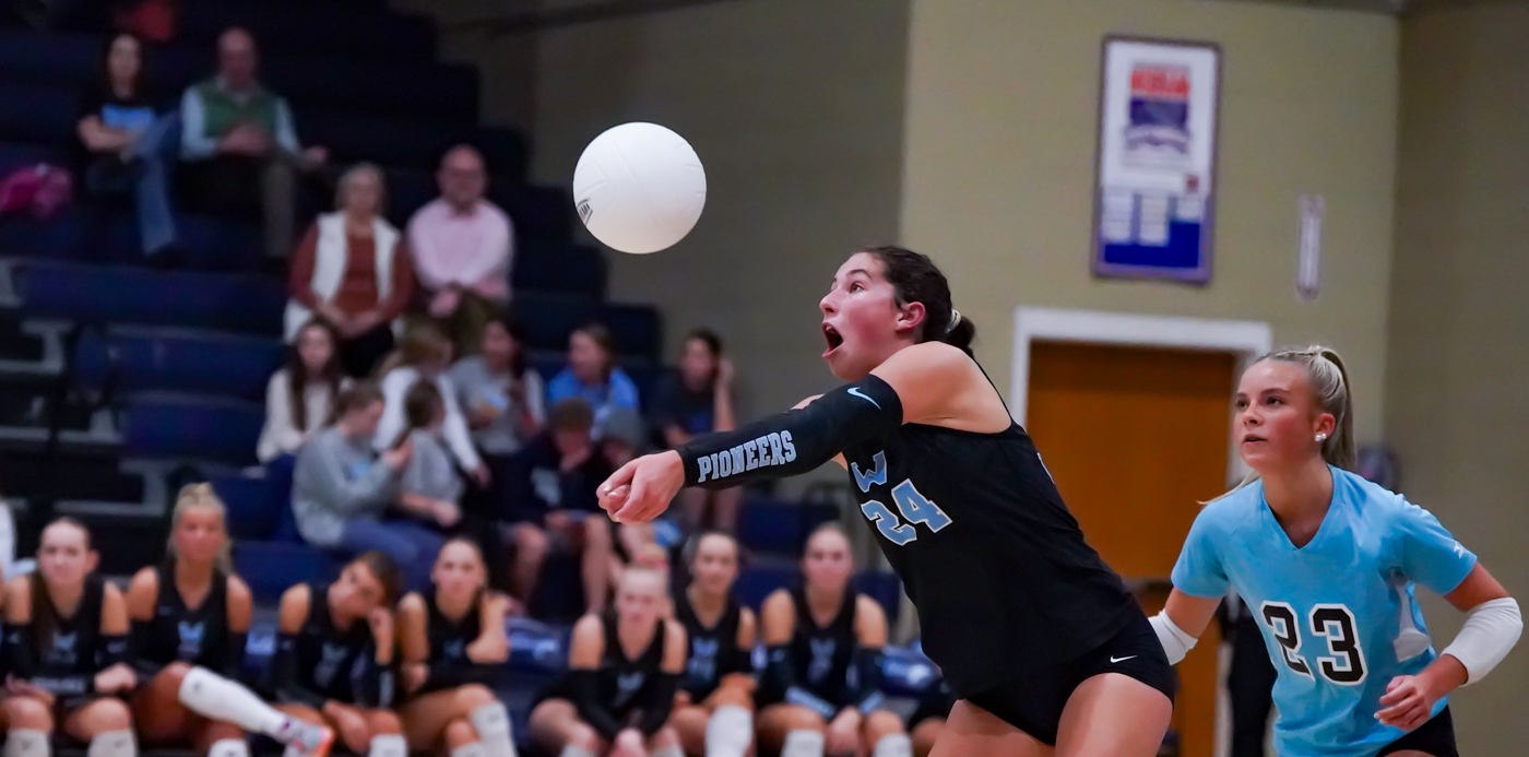 With the regular tenants of Lentz Eggers Gym falling behind (6-2) the visitors in the first set, there may have been some uncertainty in the grandstands about whether the Pioneers had met their match, but if those sentiments existed they weren’t shared by the players on the court.