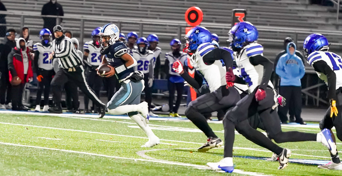 After halftime, Ragsdale cut into the Pioneer lead even more, fashioning a 12-play, 88 yard drive that took another 5:31 off the clock before Louis punched into the end zone for a 1-yard TD keeper. It was preceded the kind of rushing production for which Diggs was known, ripping off big chunks of 13 and 25 yards in and amongst Louis passes to Aiden Young and Jahveer Branch. Although Wrenn Gardner’s PAT kick into a strong, gusting wind sailed just wide of the left goalpost upright, Ragsdale was threatening to turn the game around, now trailing by only nine points at 22-13.