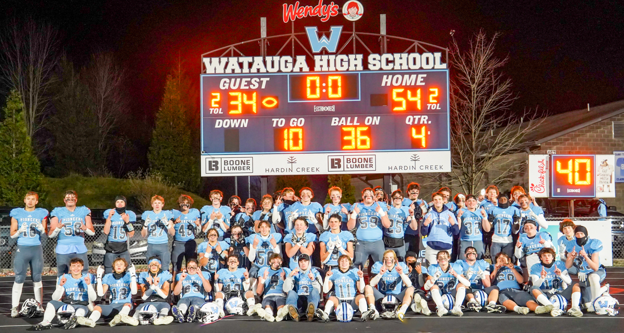 In football terms, it was a blink of an eye. Trailing 20-19 coming out of halftime, Watauga scored three touchdowns in the the first four minutes of the second half, catapulting the Pioneers to a thrilling, don’t-miss-a-minute-of-this, 54-34 win over the Raging Bulls.