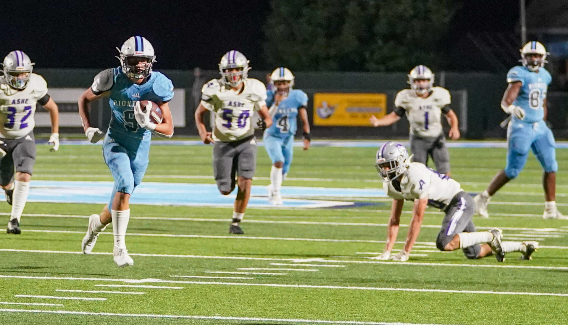 Opening the playbook a little further as league play officially approaches, the Pioneers rolled up 482 yards of total offense, 353 yards of it on the ground and 129 yards — more than usual — through the air. While running back Will Curtis carried the ball 14 times for 101 yards and a TD to lead the rushing attack, he was joined in rushing TDs by Maddox Greene, Cole Horine, Carlton Horine, and Peyton Ash.