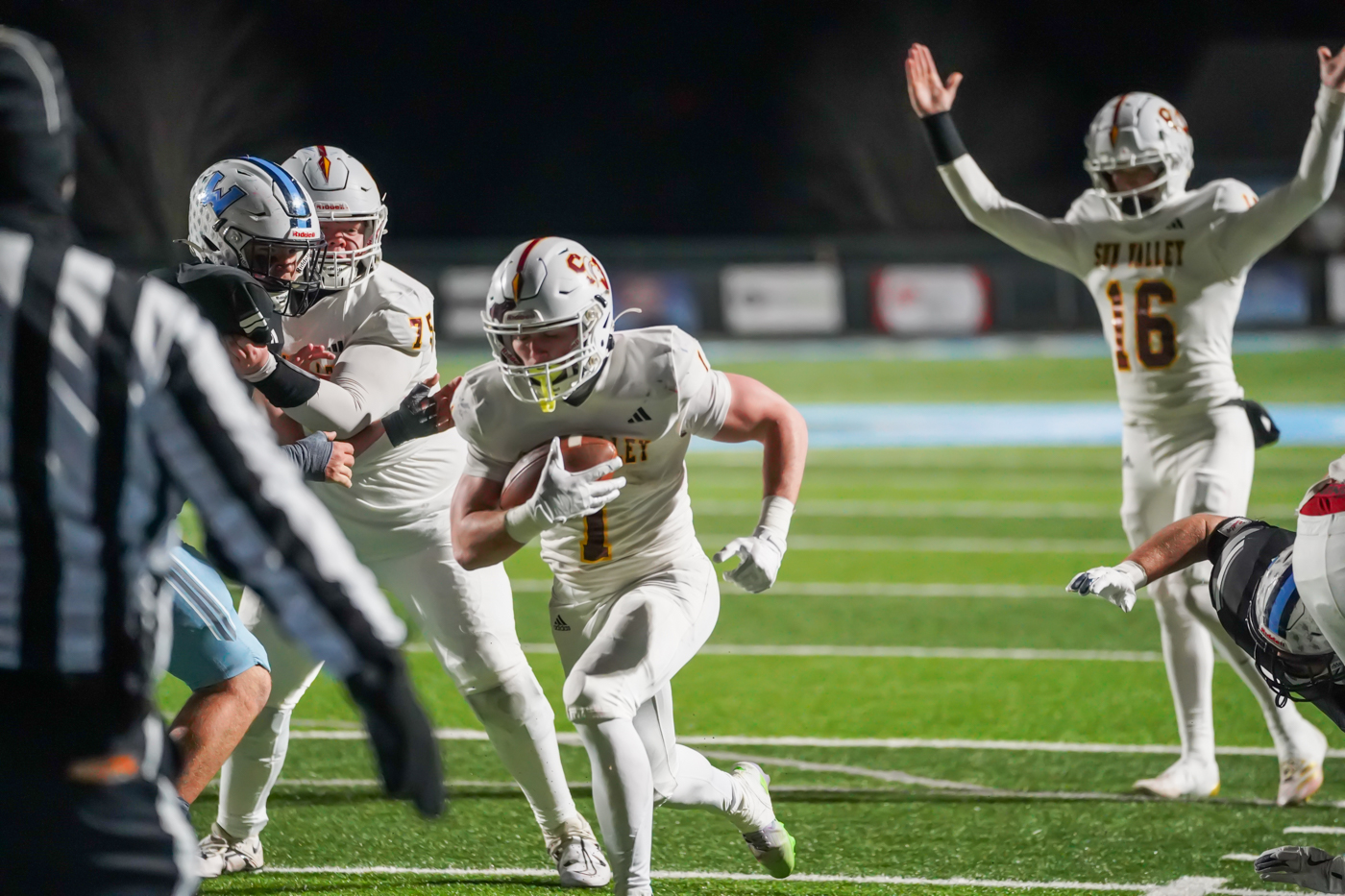 - Q1 – SV: Zach Cullen, 14-yard run for TD. Braden Carr PAT kick is good. WAT 7, SV 7