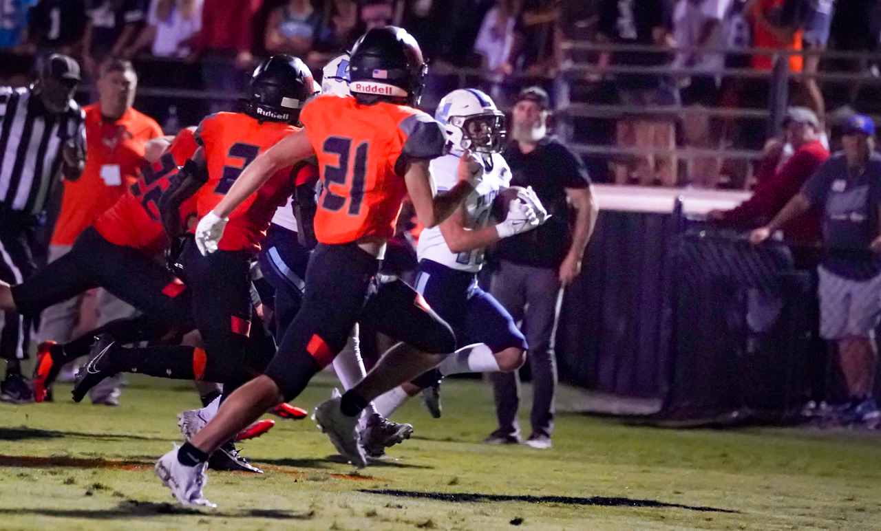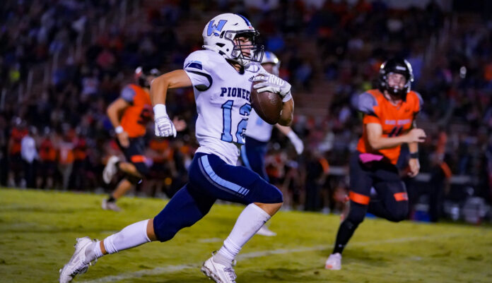 But then the wheels came off of the Black Knights’ offensive chariot when Watauga’s Evan Burroughs stepped in front of a long McMillan pass and returned it 60 yards for a “pick 6” touchdown. With Jack Wilson’s successful PAT kick, the score was 42-7, which also meant the Pioneers needed just seven more points to trigger North Carolina’s “mercy rule” (a running clock for the rest of the game).