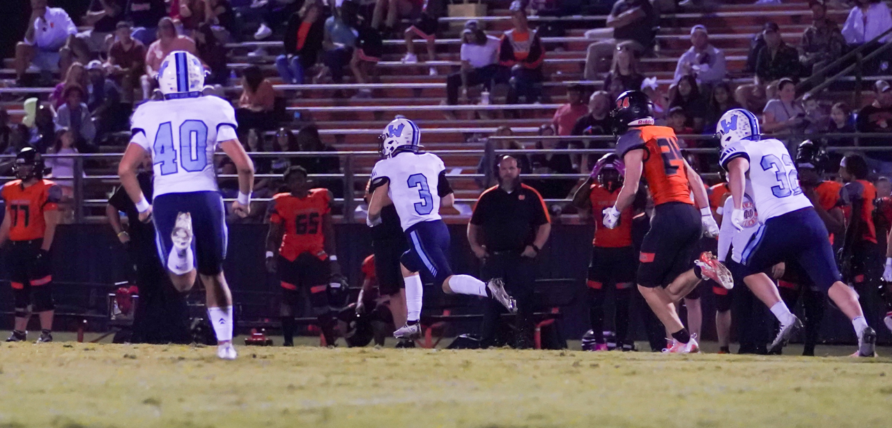 A highlight of the fourth quarter was when senior reserve linebacker Andrew Ward picked off a North Davidson pass and returned the INT 55 yards to the Black Knights’ 10-yardline. The icing on the proverbial cake was Ward lining up on offense as wingback and getting the carry around the left side for the final Watauga TD.