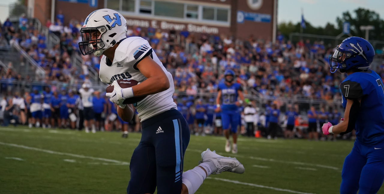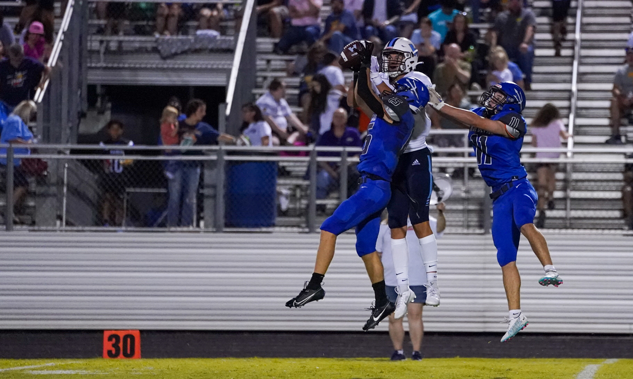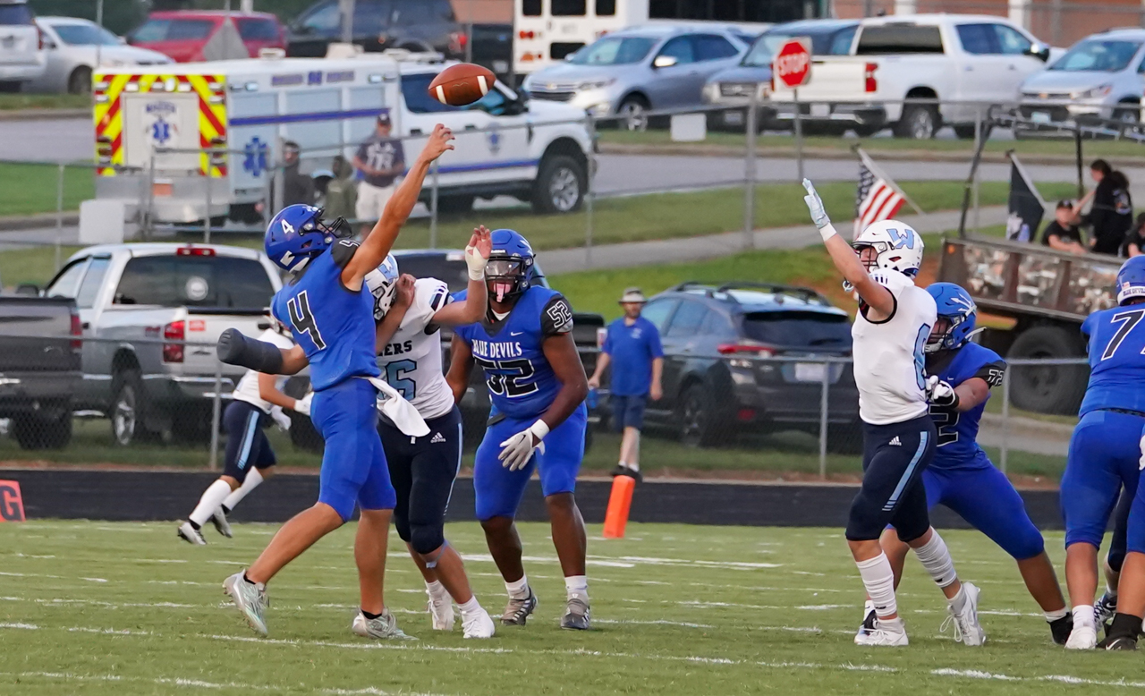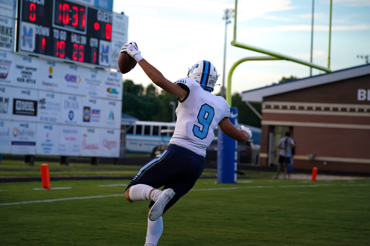 For Watauga, junior quarterback Maddox Greene enjoyed a big night at the expense of the Blue Devils, carrying the ball nine times for 62 yards and two TDs. His greatest impact, however, may well have been completing seven of eight passes for 168 yards, including two TDs vs. one second half interception. One of several Pioneer athletes playing both ways, as a defensive back Greene also picked off a Maiden pass in the second half and recorded a 33 yard INT return, as well as making several key tackles and pass breakups.