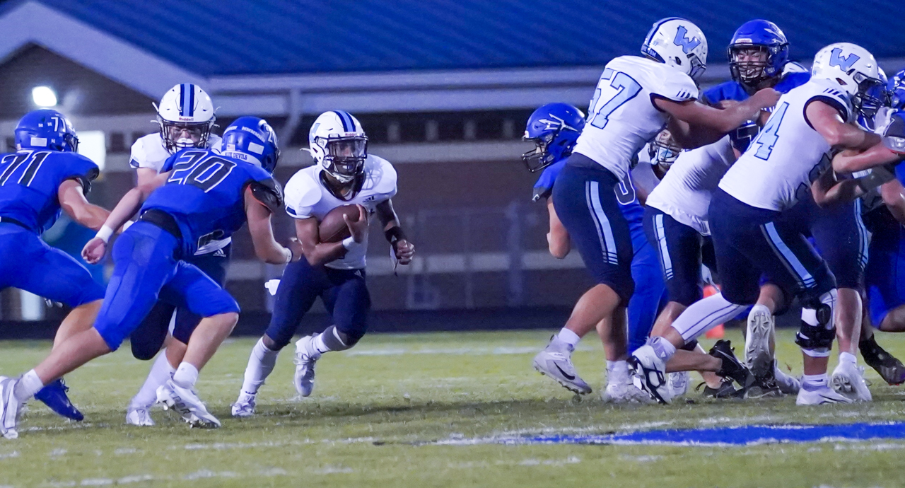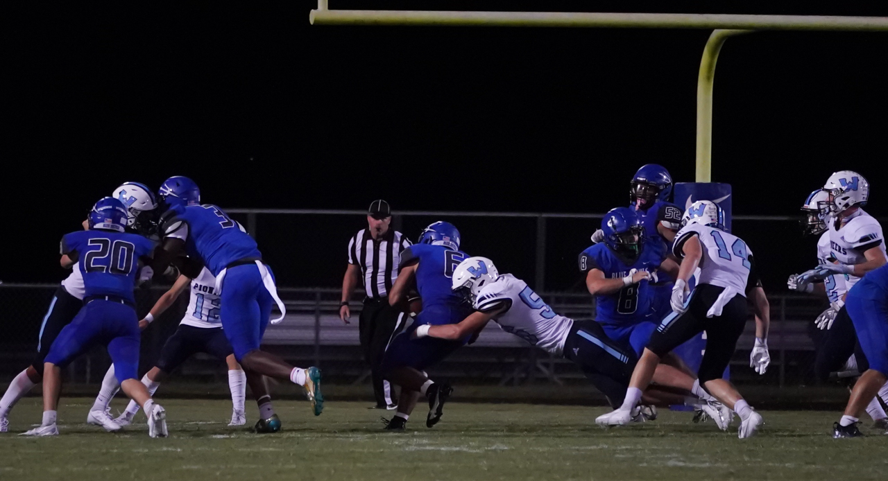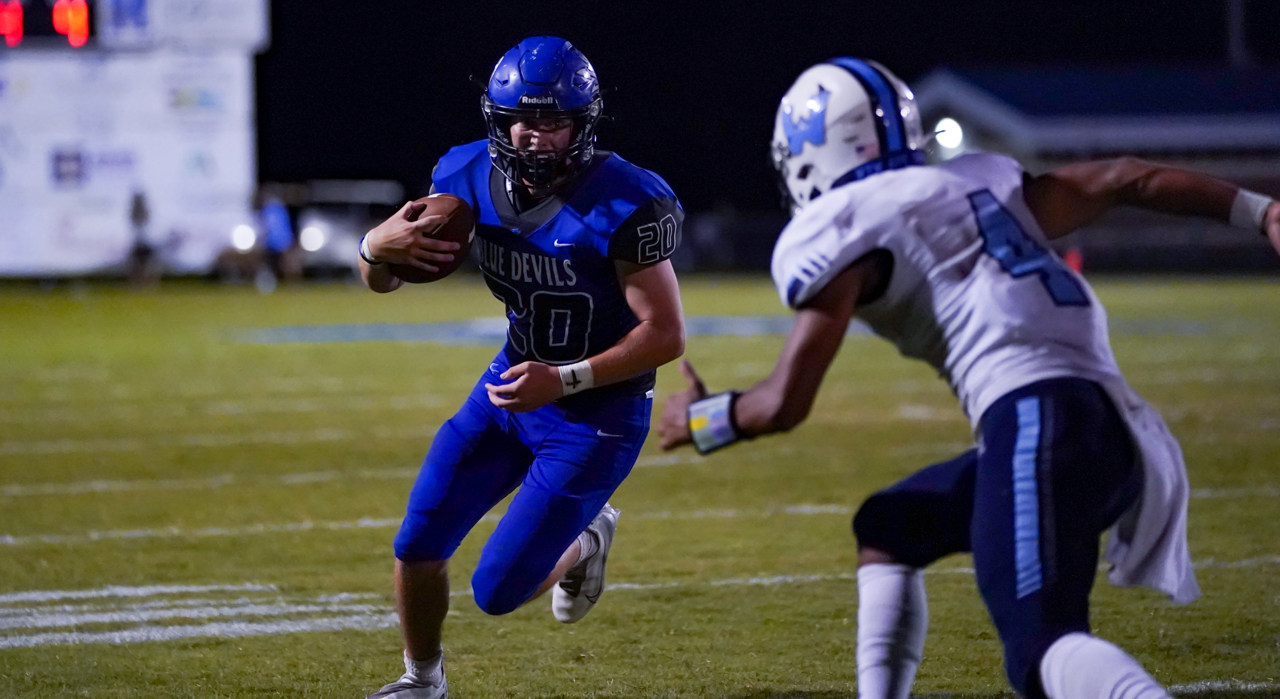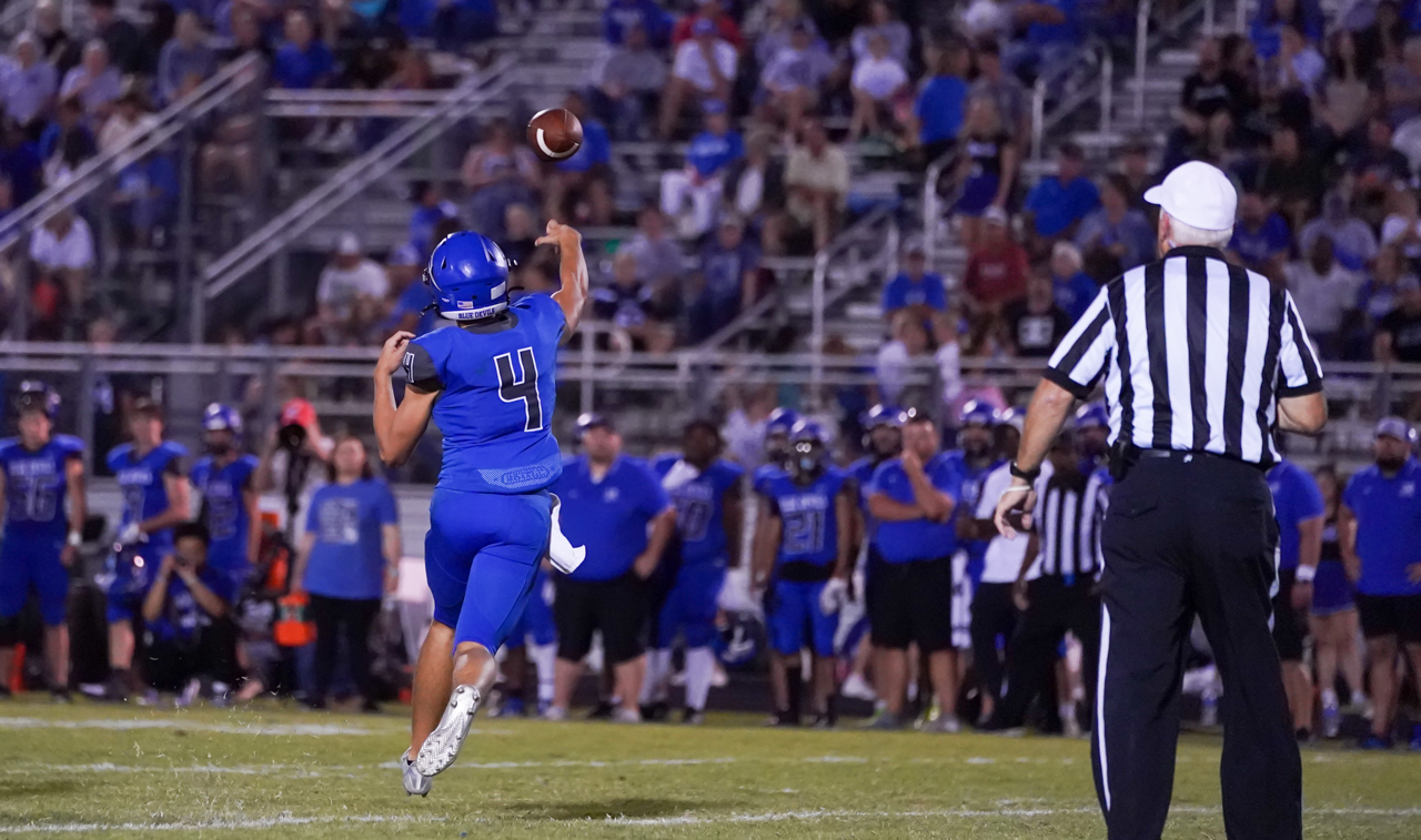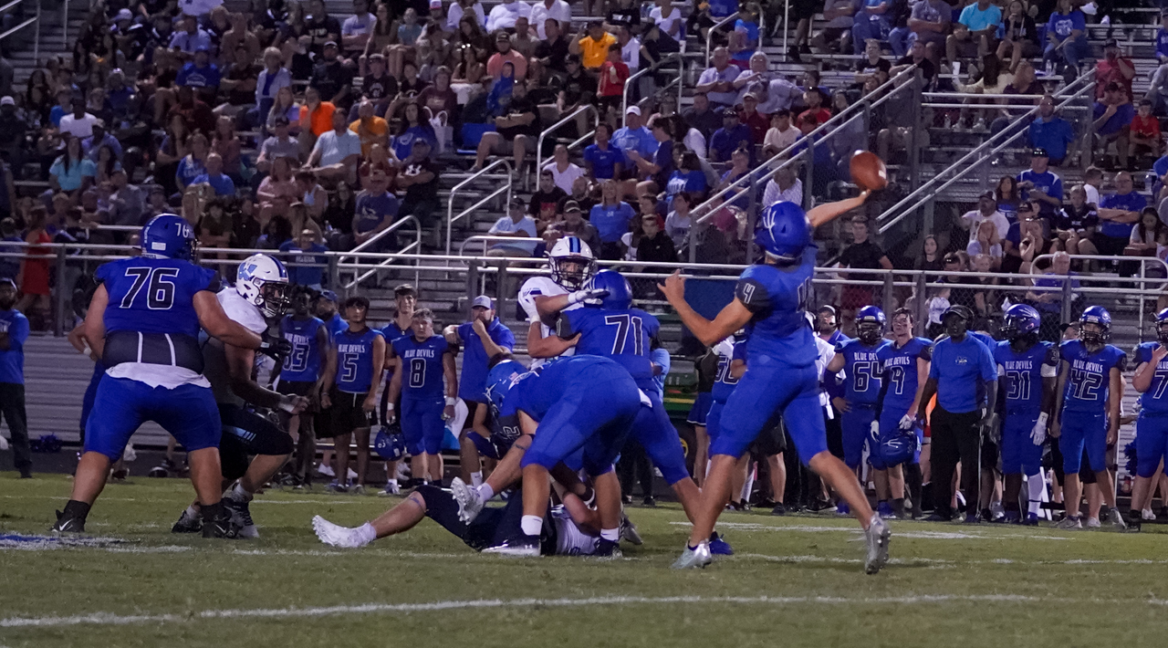 For Watauga, junior quarterback Maddox Greene enjoyed a big night at the expense of the Blue Devils, carrying the ball nine times for 62 yards and two TDs. His greatest impact, however, may well have been completing seven of eight passes for 168 yards, including two TDs vs. one second half interception. One of several Pioneer athletes playing both ways, as a defensive back Greene also picked off a Maiden pass in the second half and recorded a 33 yard INT return, as well as making several key tackles and pass breakups.
