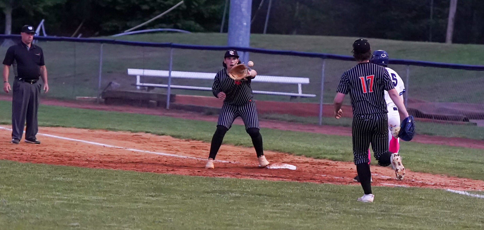 The top half of the third inning is where Davie County threatened to break open the ball game. The first batter, Coston Colamarino sliced a ground ball to third but the routine out became trouble on a bad hop in front of third baseman Burroughs. In misplaying it, Colamarino was able to beat the throw to first, the fielding error compounded by a throwing error that allowed the Davie County runner to take second base. Gryder issued one of his few walks to the next batter, Coy James, but a wild pitch also allowed Colamarino to advance to third.