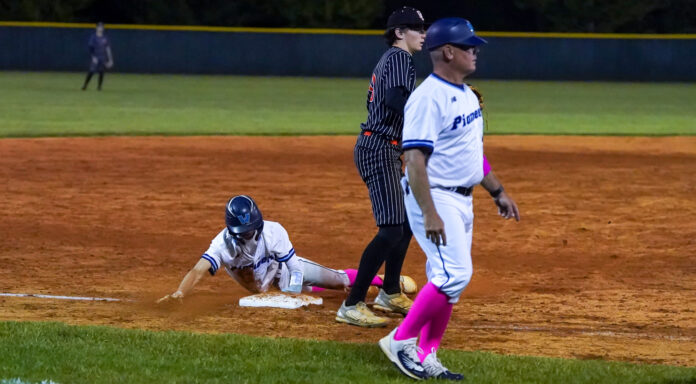 Backed by a solid Pioneer defensive effort that included two double plays, Gryder was able to avoid any more Davie County scoring through the seven innings he pitched and the Pioneers were able to get a run back in the bottom of the fifth when Hodges doubled to center and Greene drew a 2-out walk. Critcher followed with a single to left, scoring Hodges, but Greene was held up at third base, which is where he was stranded when Cook closed out the inning by grounding out to third baseman, Colamarino.