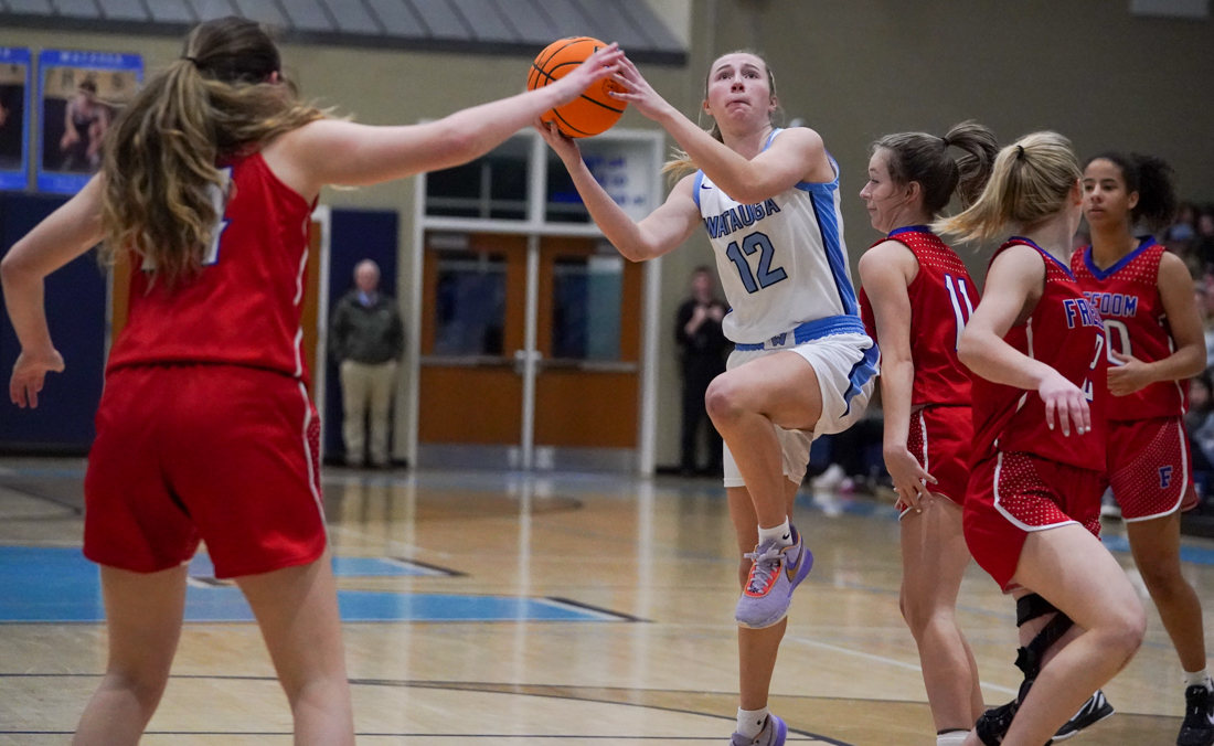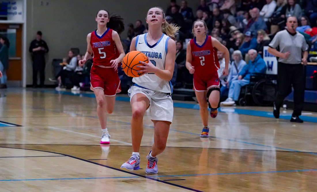 The Pioneers’ disruptive defensive effort offered Freedom relative few shooting opportunities and those the Patriots got off were mostly off the mark. Meanwhile, Watauga’s balanced scoring effort saw the Pioneers jump out to a 16-2 lead by the end of just the first quarter, and the lopsided results got even more lopsided after that.