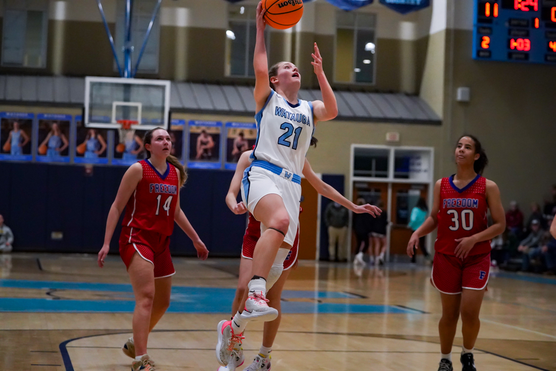 “Freedom is a well-coached team,” said Watauga head coach. “Tonight, our skill work paid off. We put the right pieces together to allow our players to play to their strengths. I think our defense caught them a little bit off guard. As a coach, I know you can prepare for something but it isn’t the same when you get out there and are actually playing against it. They struggled against our 1-3-1 zone, which was apparent by their having only scored 8 points by halftime. We got some runouts and established momentum.”