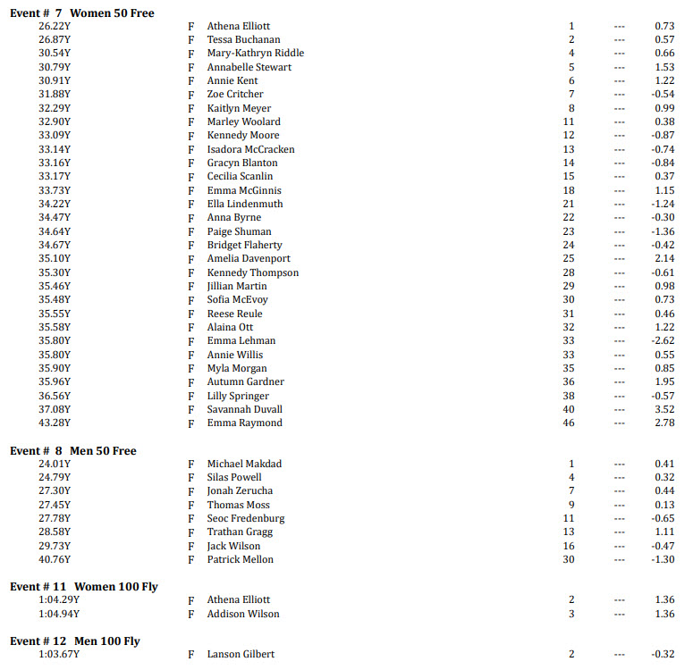 - Women’s 50 Free – Athena Elliott