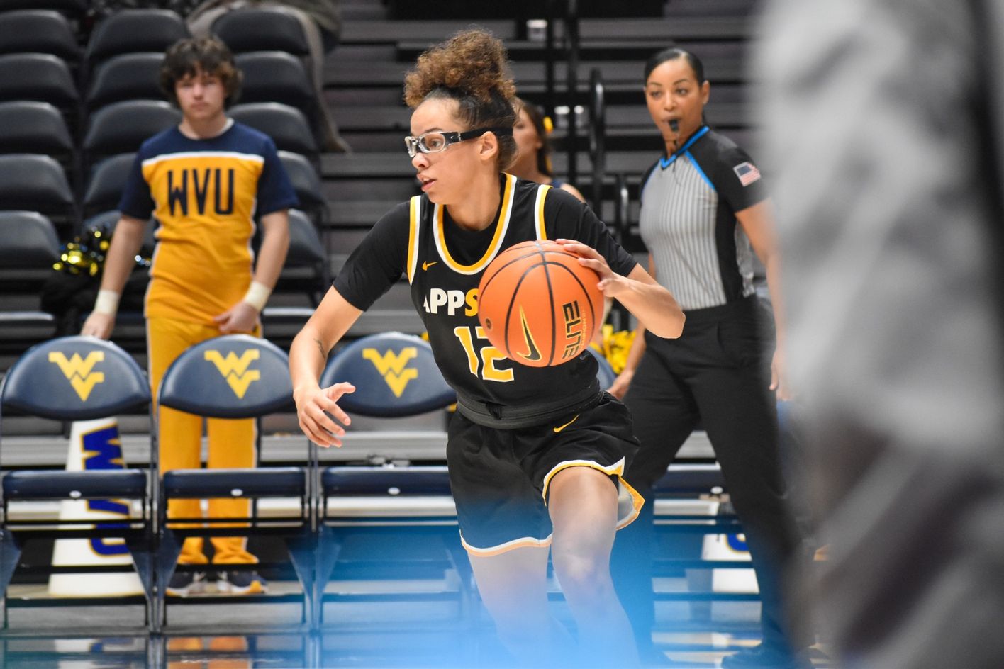 WVU jumped to an early 6-0 lead in the first quarter. A jumper and free throw from Porter brought App State within one (8-7). West Virginia’s Savannah Samuel drained a 3-pointer, which Gilbert promptly answered with a 3-pointer of her own to keep the Black and Gold within one (11-10). Another WVU three extended the gap to 14-10. Freshman Alexis Black made a jumper to close out the quarter, putting App State within two at 14-12.