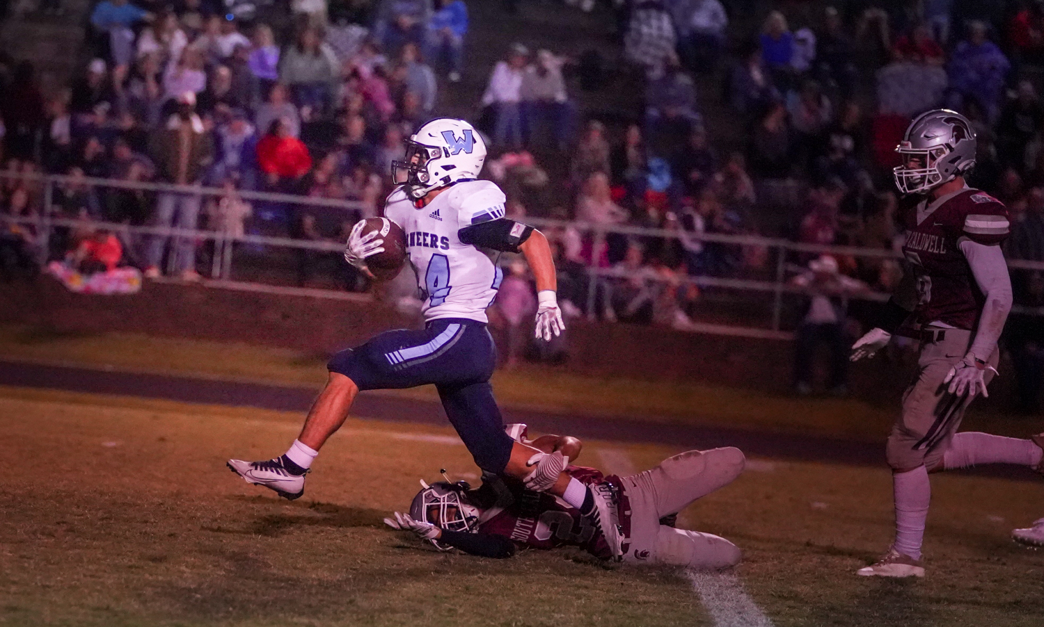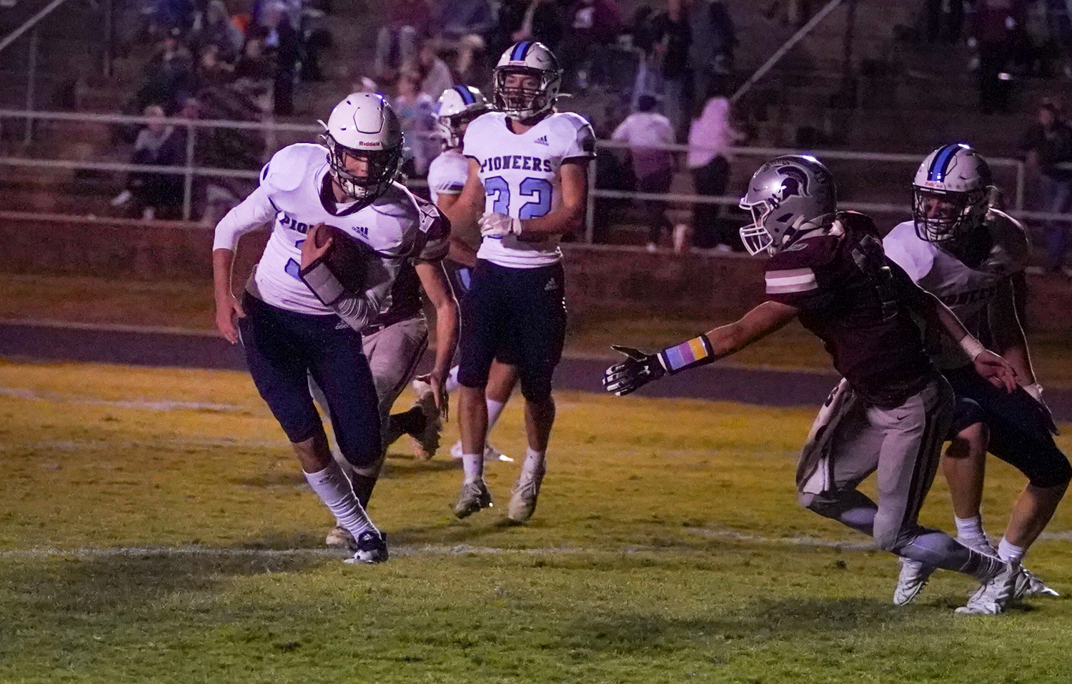 The Pioneer defense limited South Caldwell to just 218 yards of total offense, 123 rushing and 95 through the air. Losing one of four fumbles on the night and having three passes intercepted ultimately short-circuited the Spartan offensive efforts.
